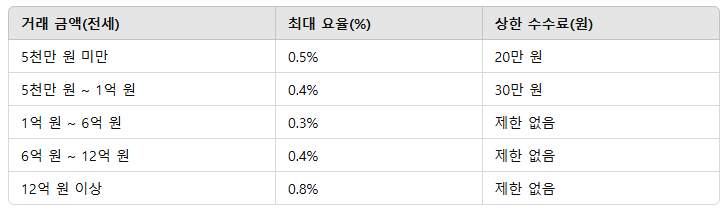 2-2. 부동산 전세 계약 시 중개 수수료 계산법